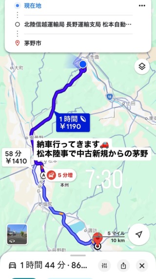今回は茅野市でしたので、松本の陸運局で車検のコースを通し、そのままお客様のお宅へお届け納車させていただきました。